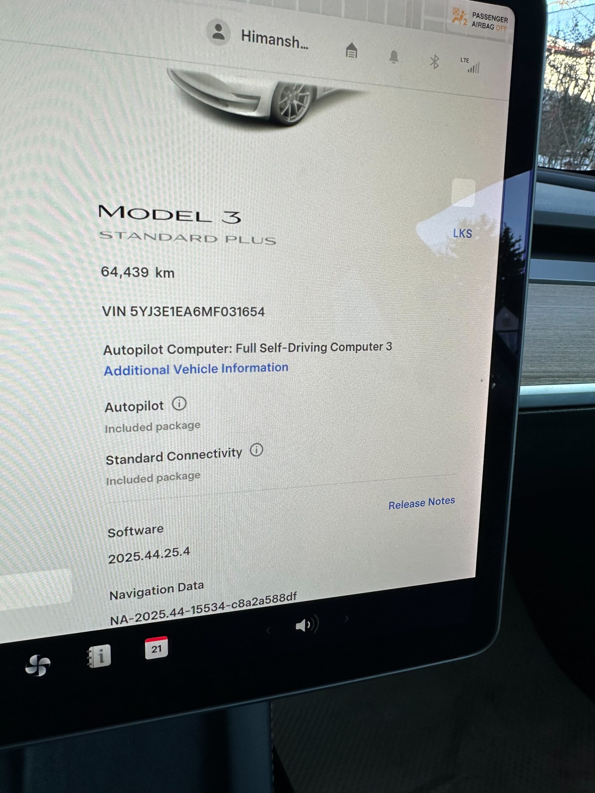 VIN: 5YJ3E1EA6MF031654
